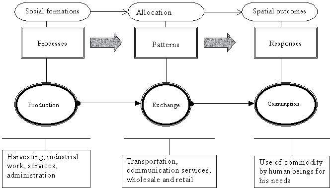 This is the final aspect of all economic activities in which the product is used. This use is the response, spatial outcome or simply the consumption.