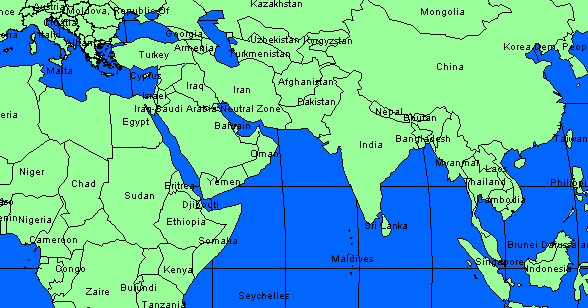 Map showing Insular Sri-Lanka, Peninsular Saudi Arabia and Landlocked Nepal